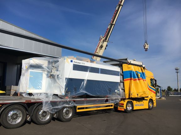 Am 14.07.2020 war es soweit - Anlieferung unserer neuen 2D - Laserschneidanlage TruLaser 3030 von Trumpf mit einer Laserleistung von 6 kW.
